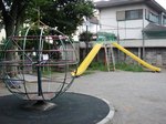 中央にあるトンネルのお山はきっと子ども達のお気に入りなのでしょうね。写真は、公園の入り口が両側にあり、それぞれからお山を撮影したものです。