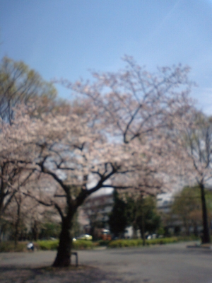 平成21年4月4日 ジョギングで通りかかったところ、桜が満開でした。芝生広場には、多くの早大生(?)がお花見で盛り上がっていました。お花見というより合コンピクニックという感じでした。