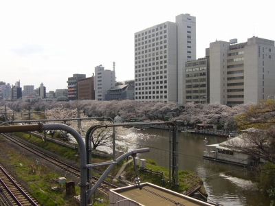 きました。お堀の桜も、きれいでした(JR飯田橋・南口の牛込橋より)