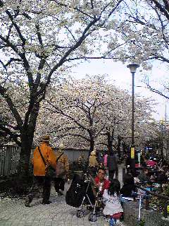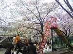 駅から花見の人の大群が~!地元連中は近場で花見できてご機嫌♪