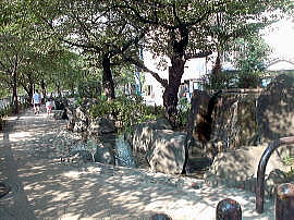 大東橋から(途中に南小滝橋、亀齢橋がある)スーパーいなげやの脇にある小滝橋まで神田川の右岸、新宿区側にある幅約7mの公園です。川側に桜の木が生い茂り、ベンチも多くあります。
