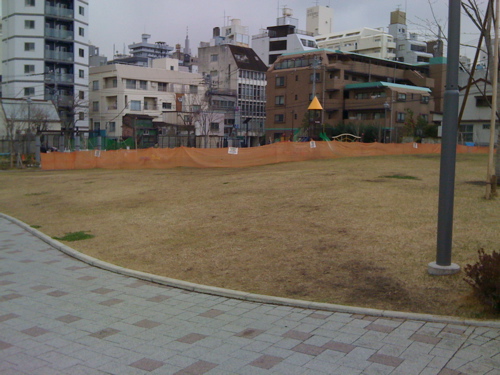 我が家の近所にある、富久町さくら公園ですが現在芝生の養成中です。