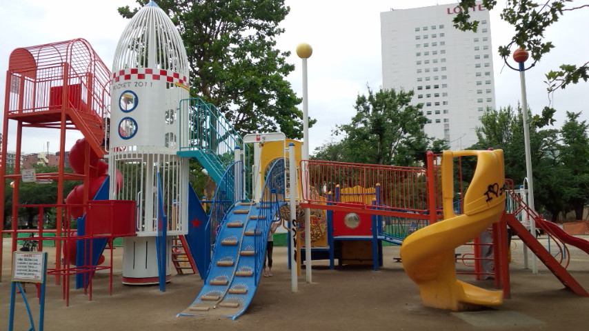 真ん中がロケットの形になっている遊具があるので”ロケット公園”と、子どもは呼んでいます。
