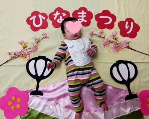ねぞうアートは本来「熟睡している赤ちゃん」の周囲に飾りを置いて可愛い写真を撮るもの。